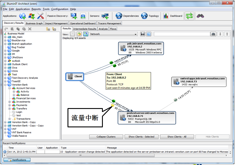 03:实时监控业务链路的情况,并提前预警,和通常监控物理链路不同,IlluminIT监控的是上层软件链路,这必须具备识别流量的能力